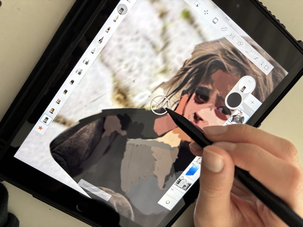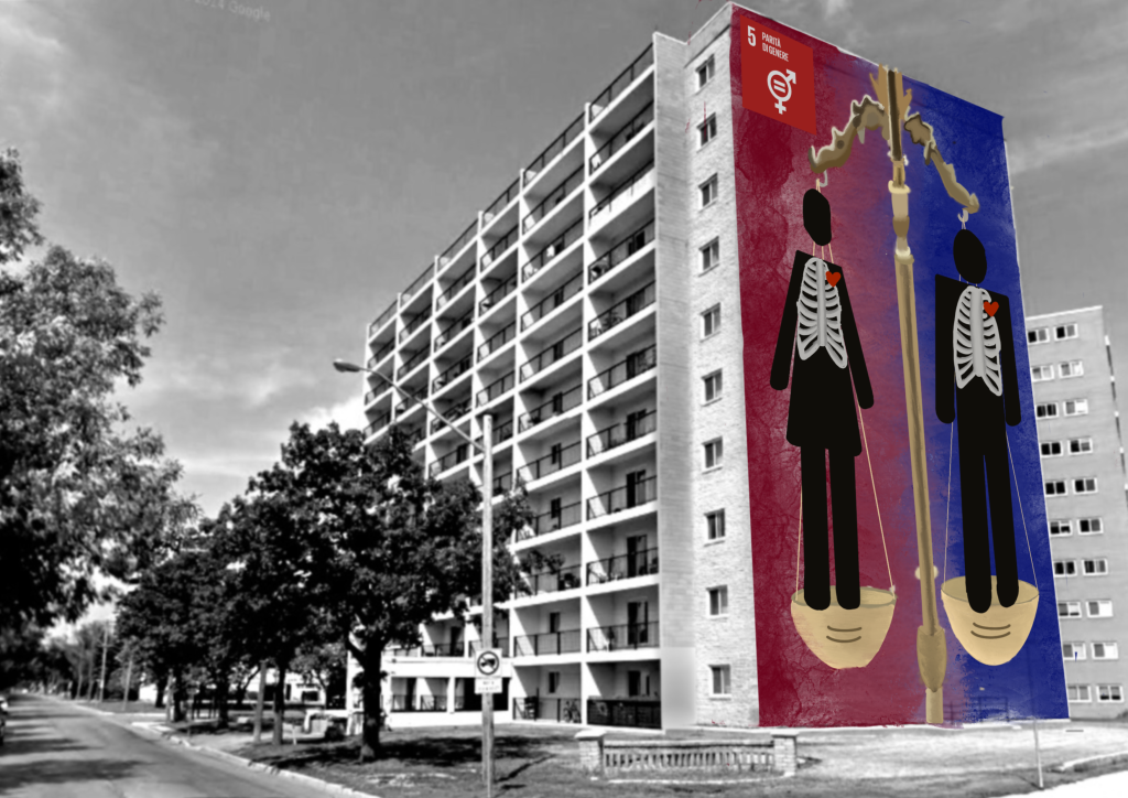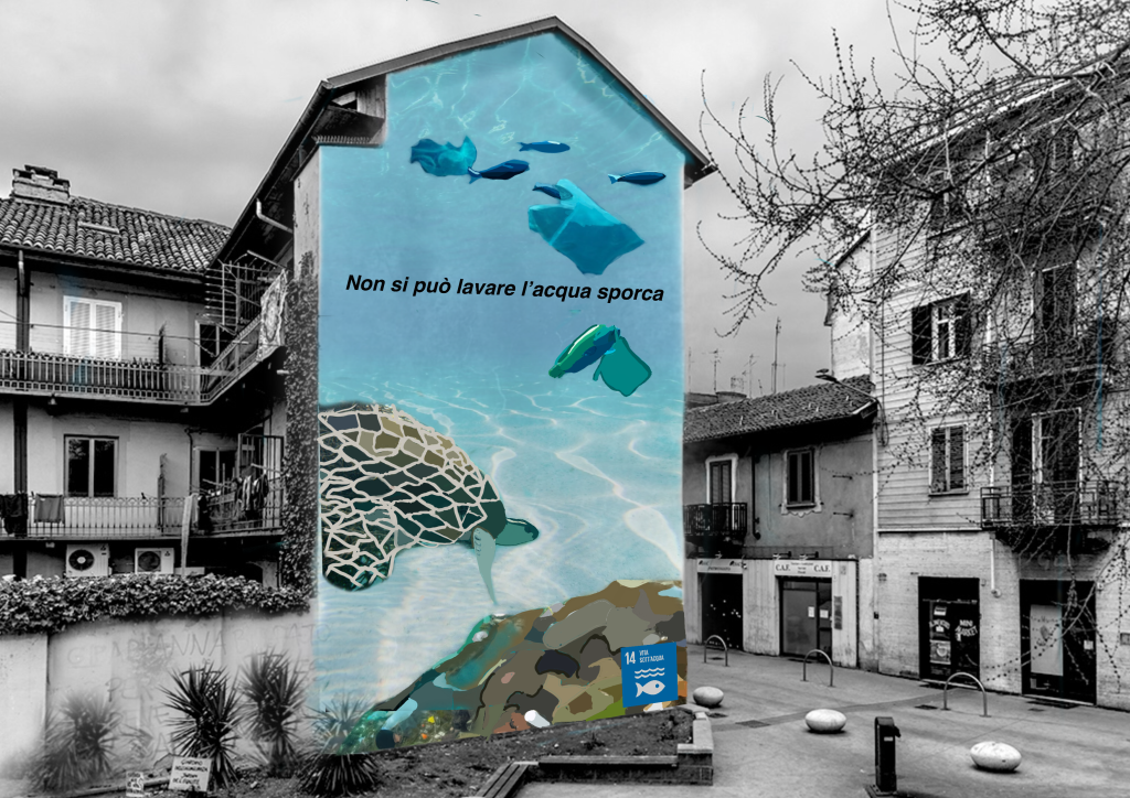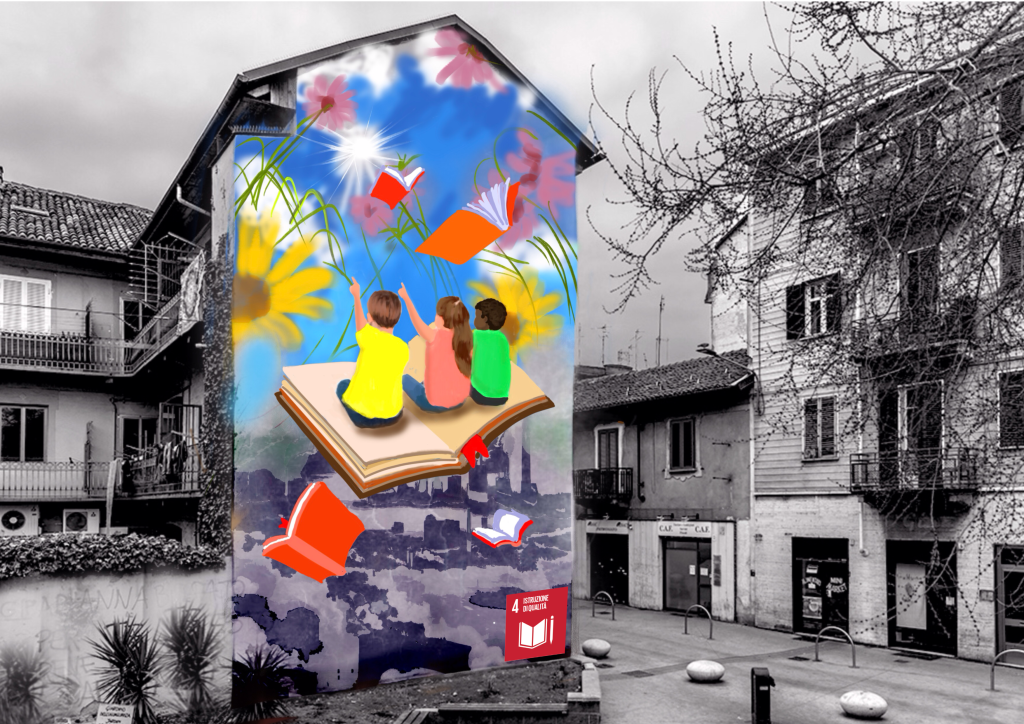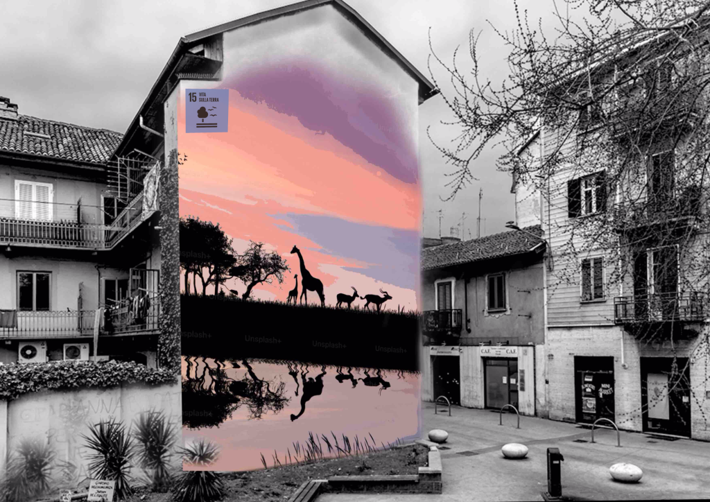 Let’s get ready to bring our digital mural to life. Our goal is to create a work of STREET ART inspired by one of the 17 Sustainable Development Goals (SDGs) of the 2030 Agenda using digital tools. In this case, we’ve used an iPad with the Sketchbook application. Let’s imagine we need to create a project to show a client, and therefore produce a digital “rendering” that will later be realized large-scale on the wall