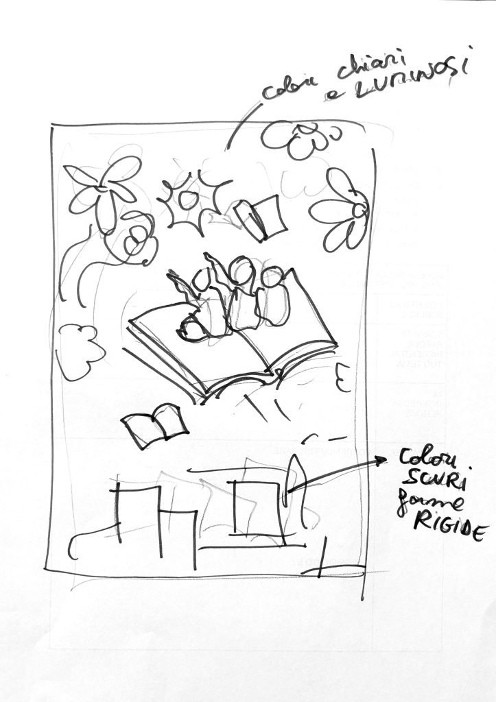 We can also create a simple pencil sketch on the back of the form to give shape to our idea and to create a schematic composition of the elements we intend to include.