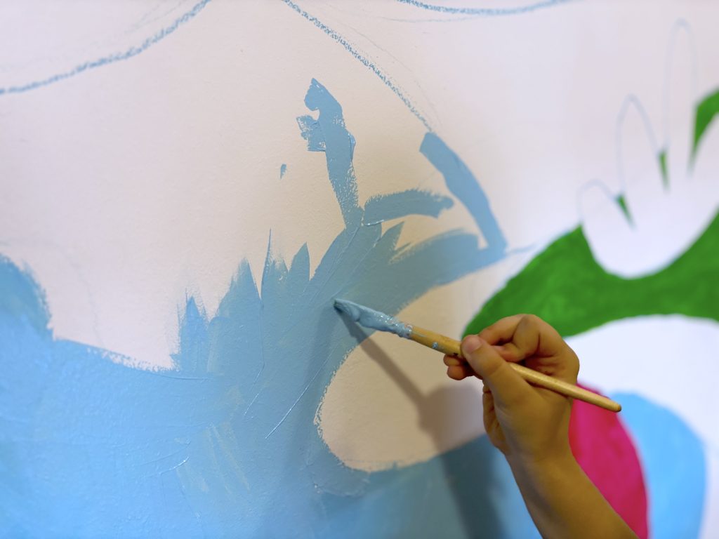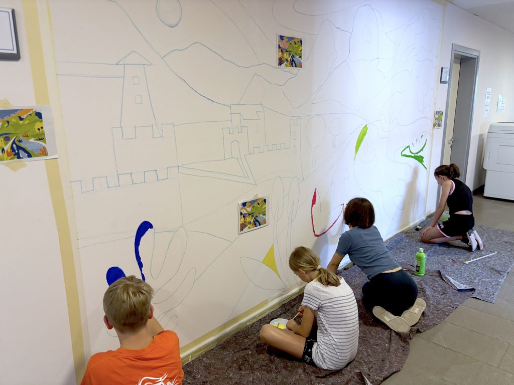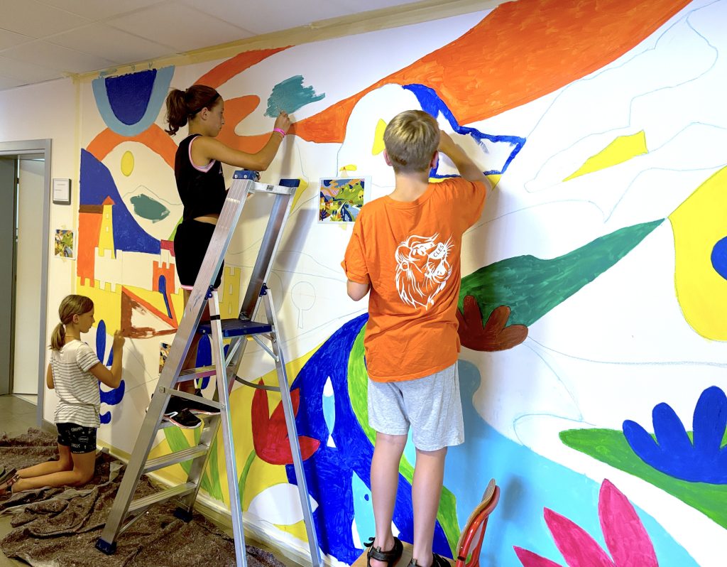 The goal of the project, which took place over an eight-hour day, was to enhance the students’ technical skills and have them work as a team to create a large-scale work, intended to permanently decorate the school walls.