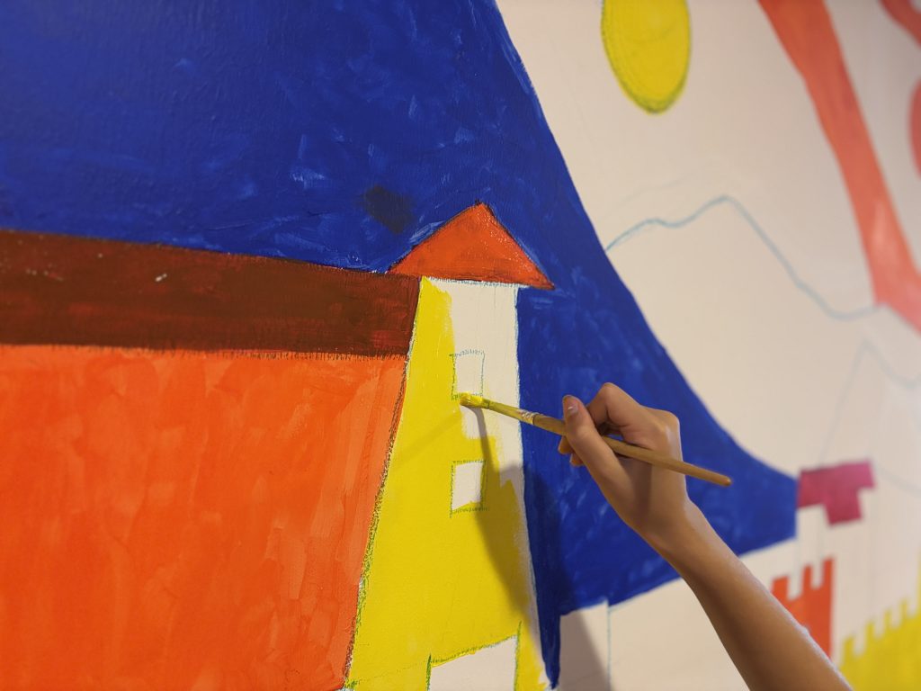 The group work was structured into a planning phase and an execution phase. In the first part, the students were introduced to the mural design and the challenges of enlarging the image. This highlighted the importance of having a precise plan, essential for creating an effective work.