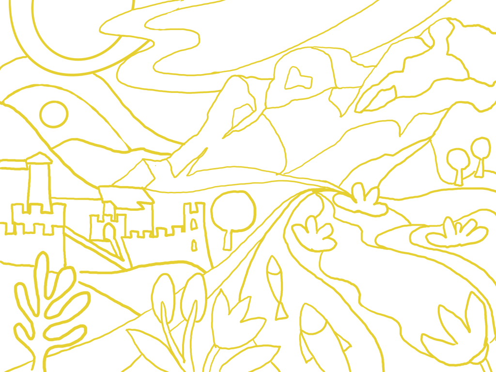 Painting a mural together on the walls of the school in Mezzolombardo was a highly valuable educational and formative activity. The experience was conceived as a group activity, with a “learning by doing” approach. The mural was painted on the ground-floor wall, in the corridor leading to the cafeteria, next to the administration offices. The chosen subject was a stylized landscape depicting the Piana Rotaliana, with Mezzolombardo Castle and the Noce River.