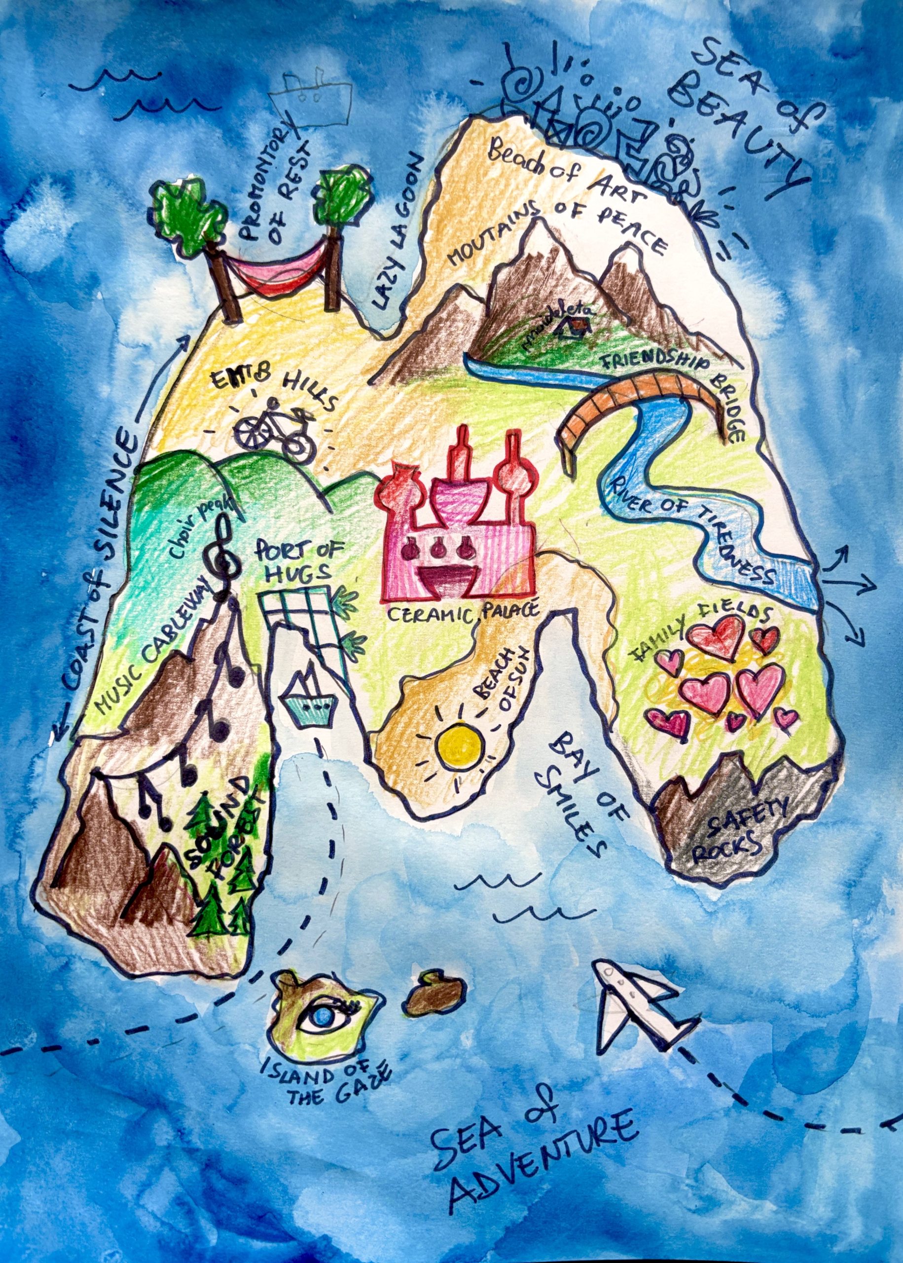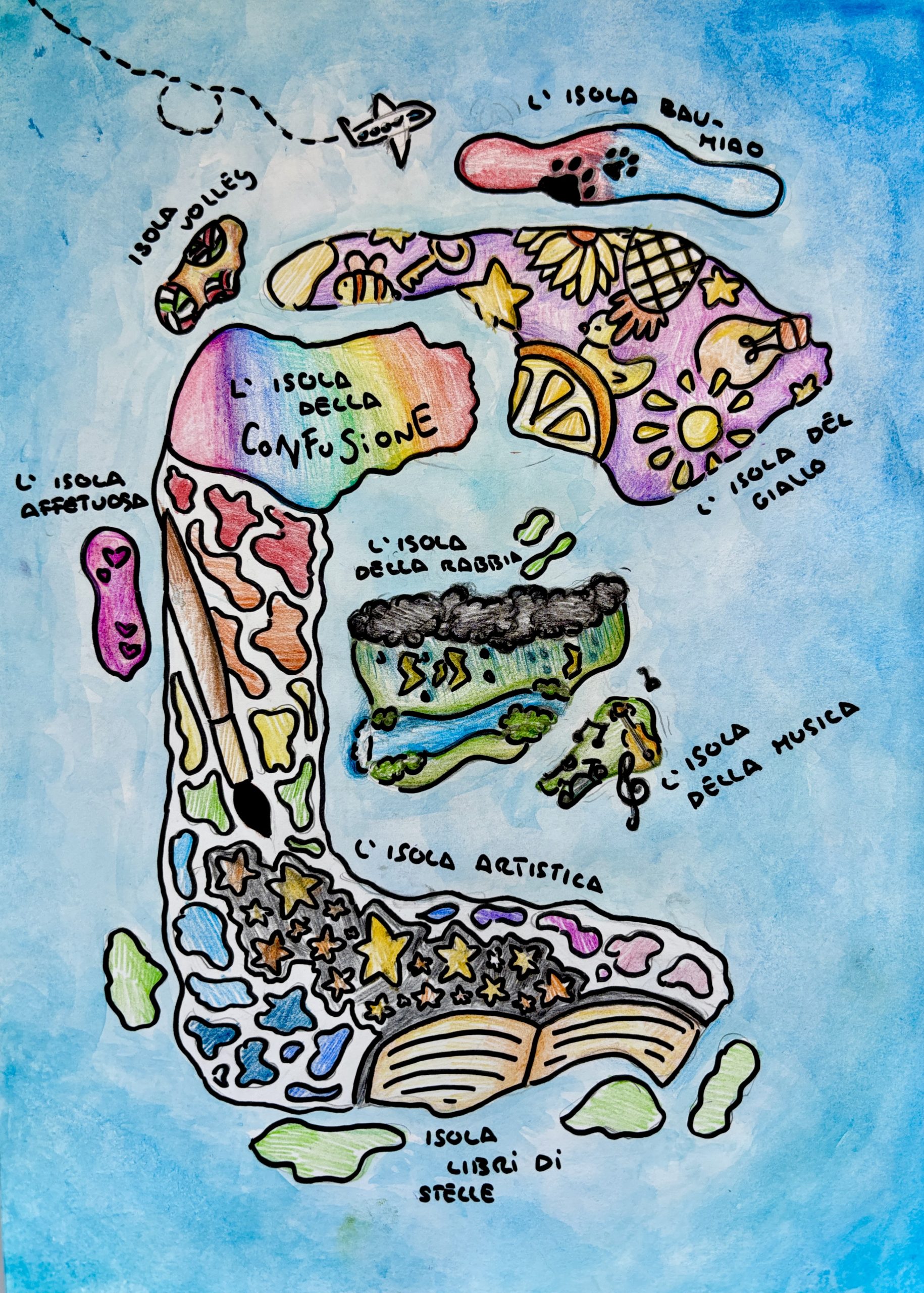 This workshop was designed to help 6th grade students reflect on their identity, tastes, and emotions, transforming these abstract elements into a visible and concrete landscape: their “inner island.” It’s a perfect activity for the start of the school year or for identity-related orientation programs. The objectives of the activity touch on various educational themes:
