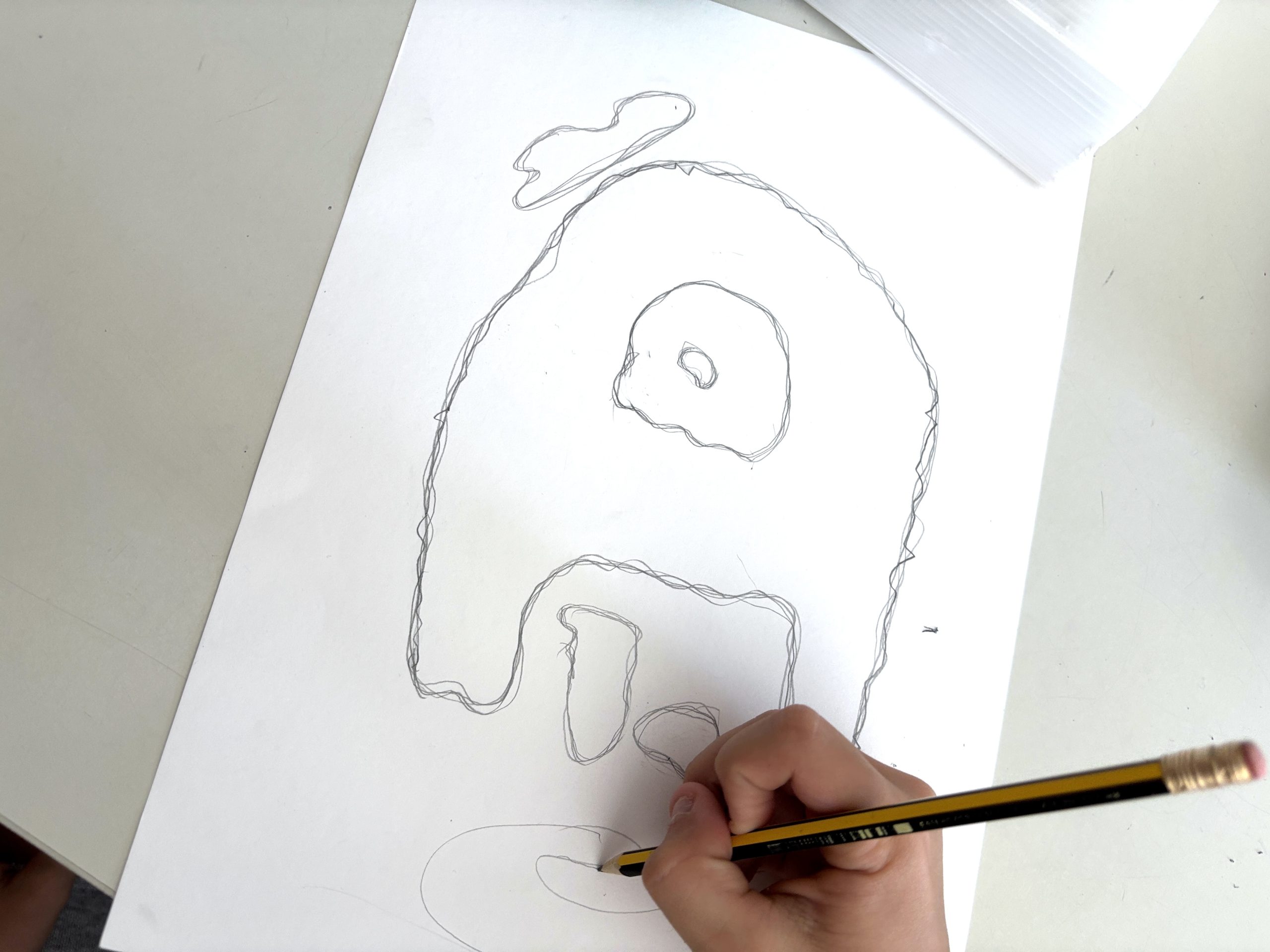 For the outline and shape of the island, we chose to use the initial of our first name (for example, the letter “C” or “M”) and drew it in pencil on the paper. Within this unique outline, we traced the elements that represent us.