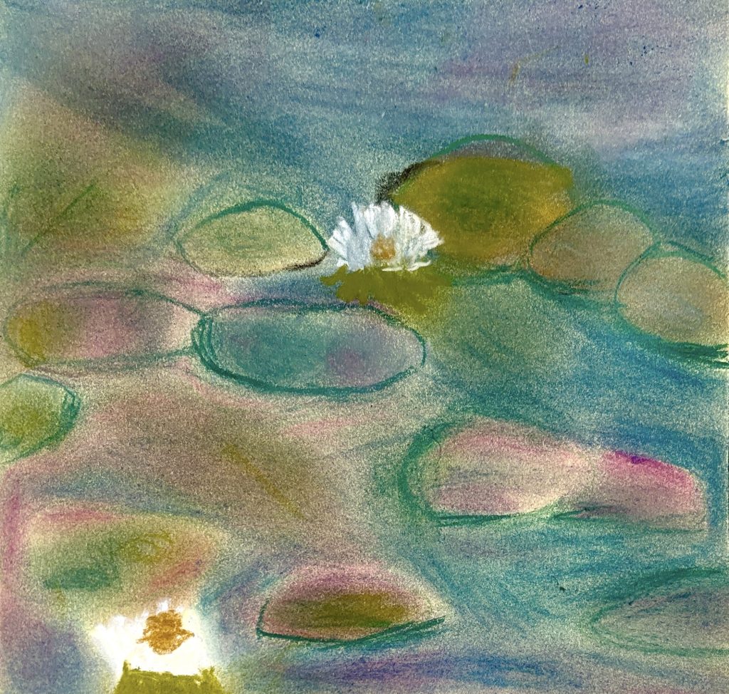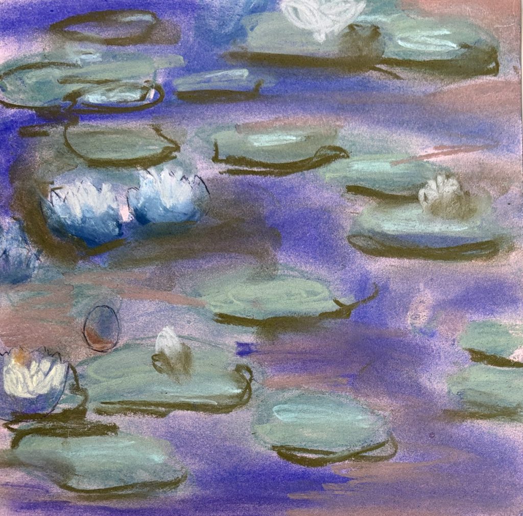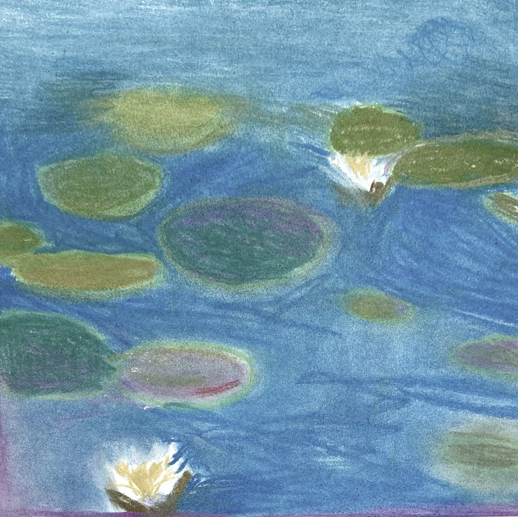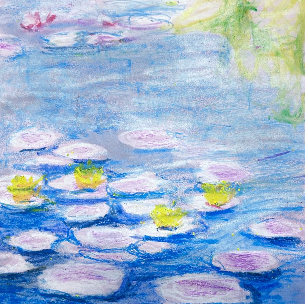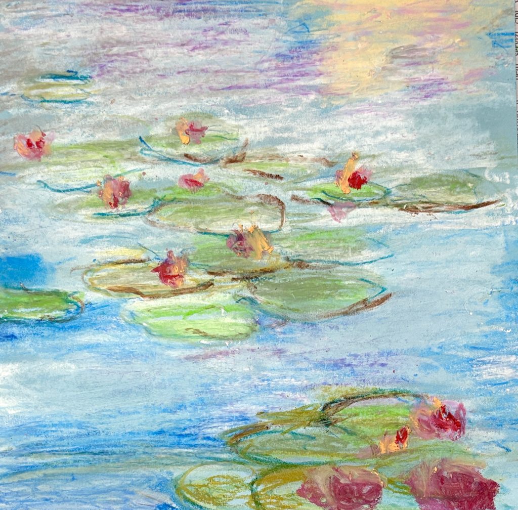 Monet’s Water Lilies with oil pastels