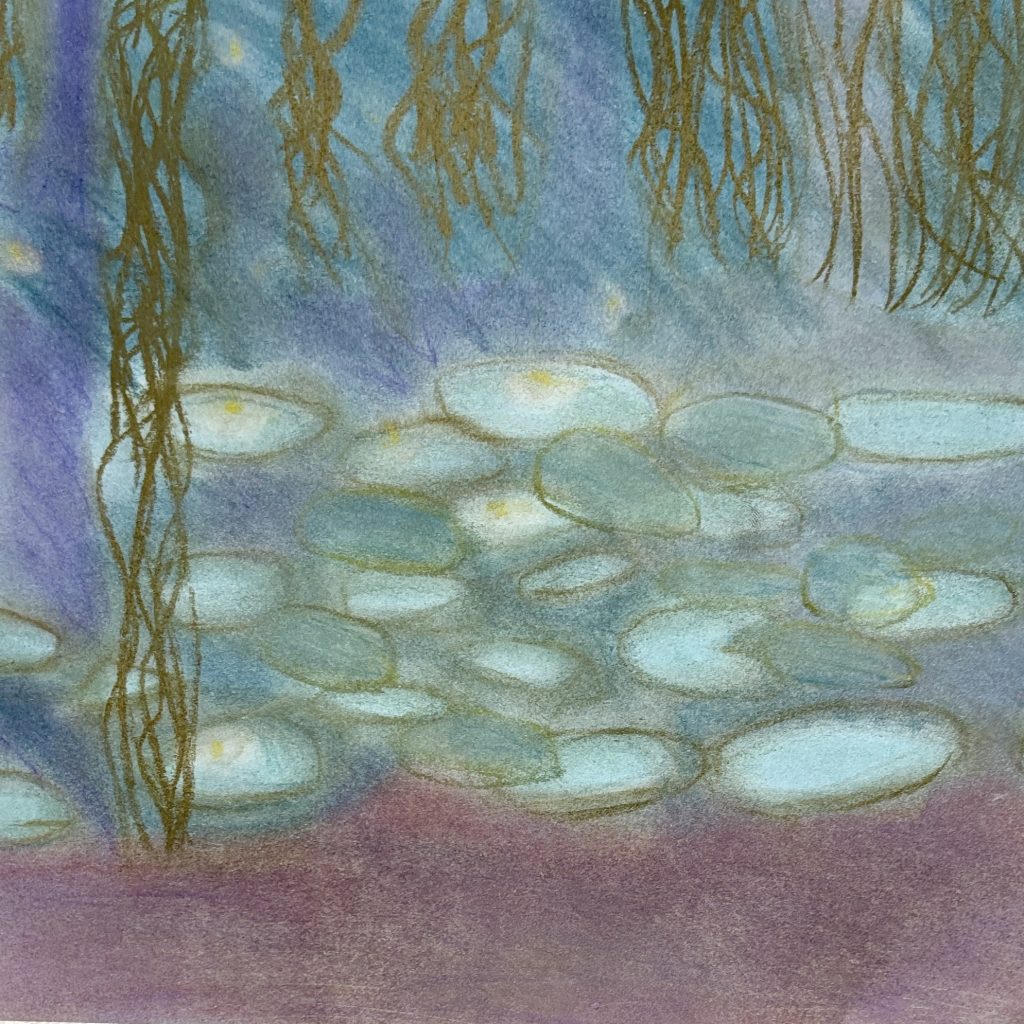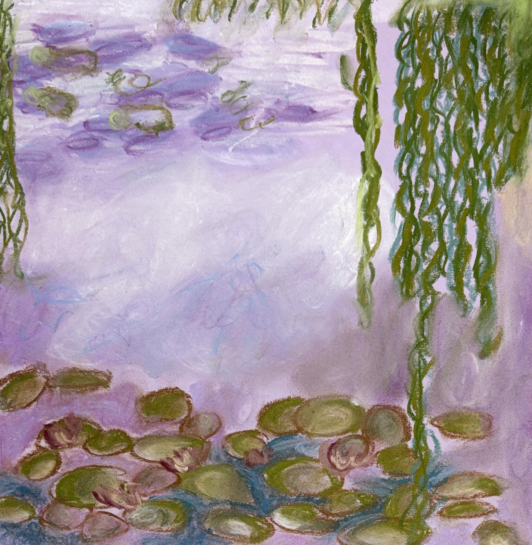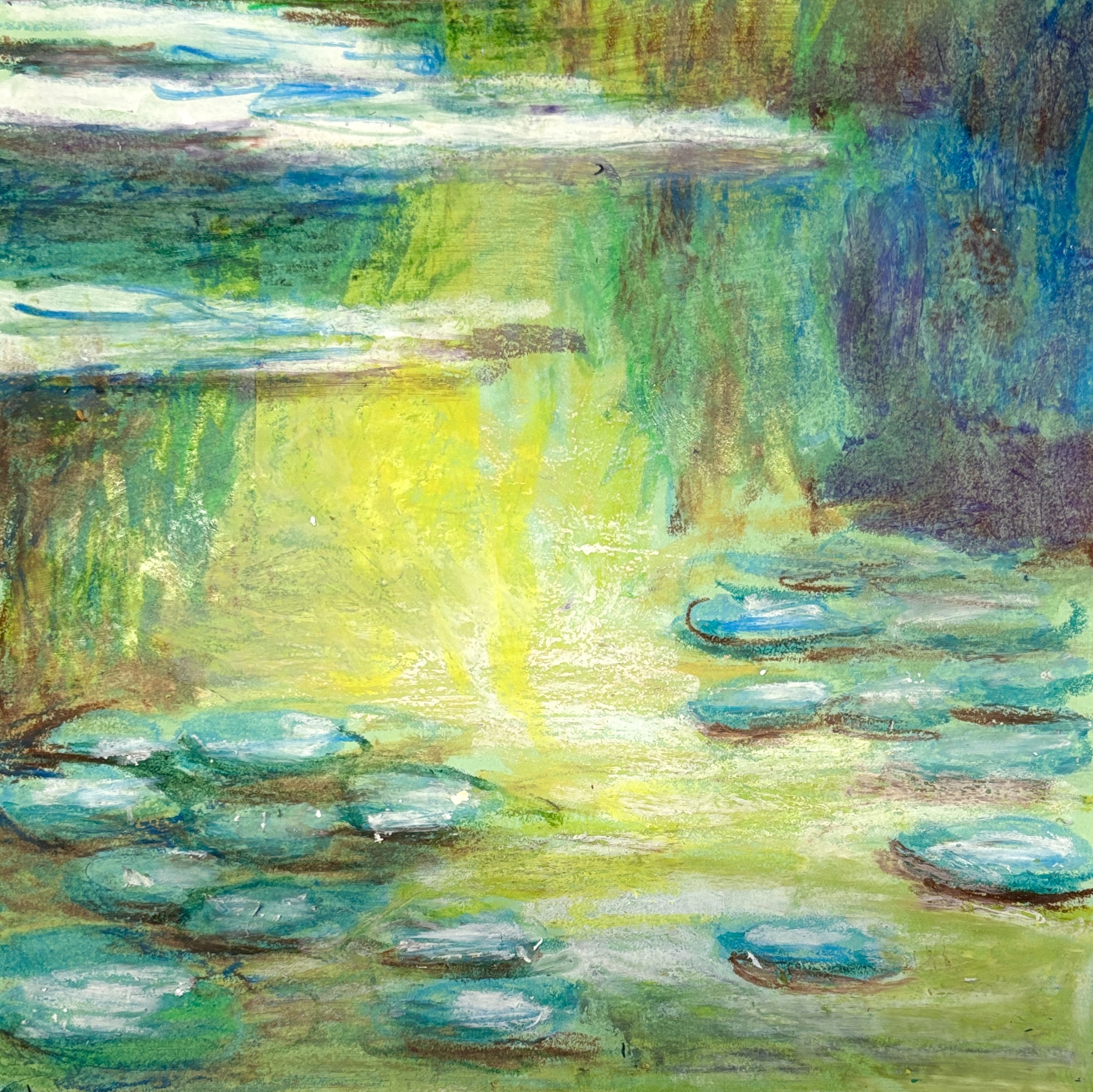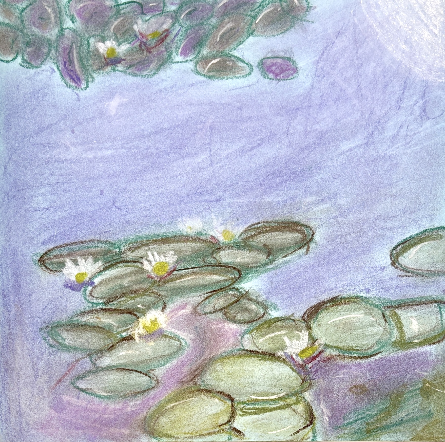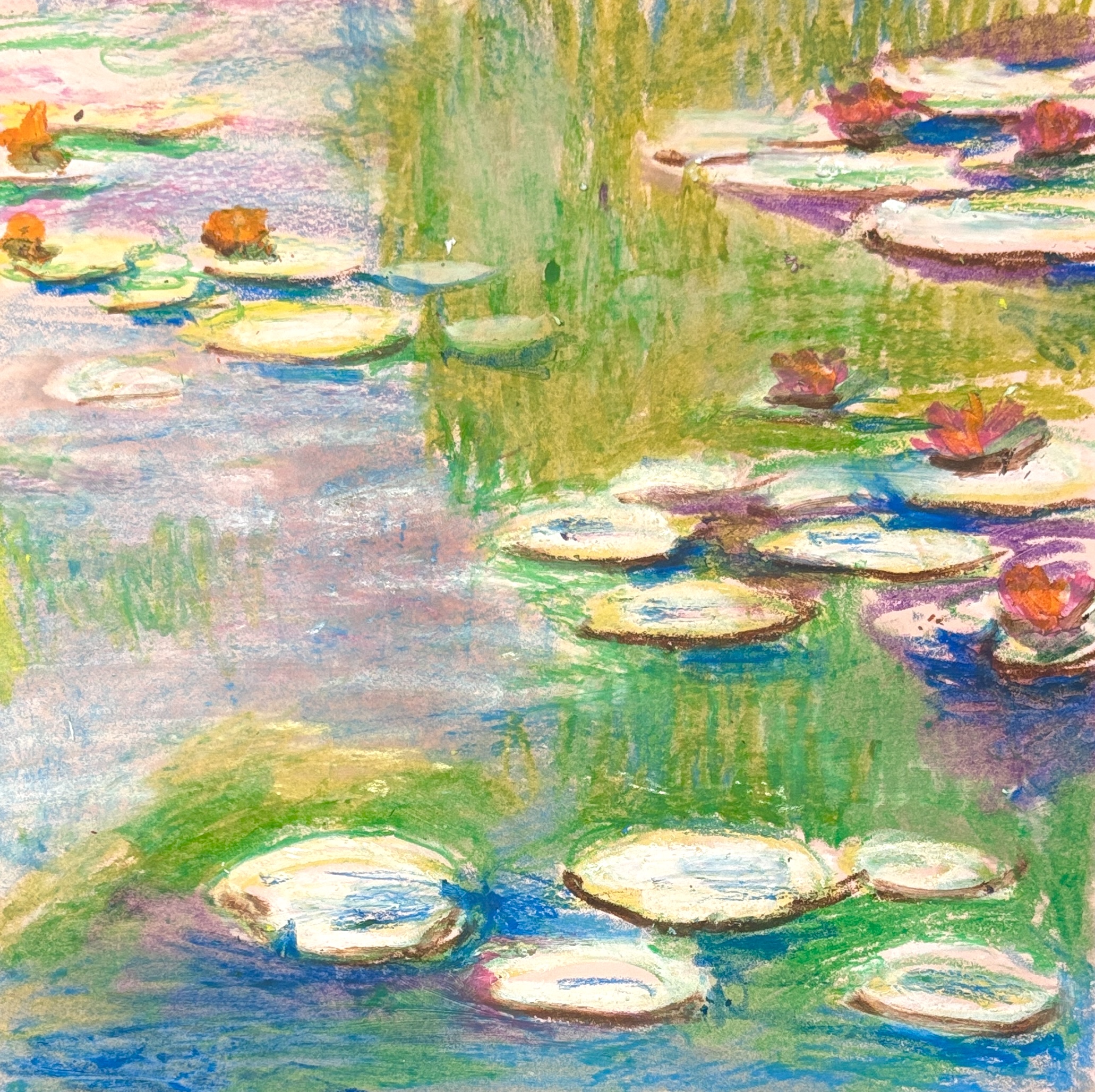 Monet’s Water Lilies with oil pastels