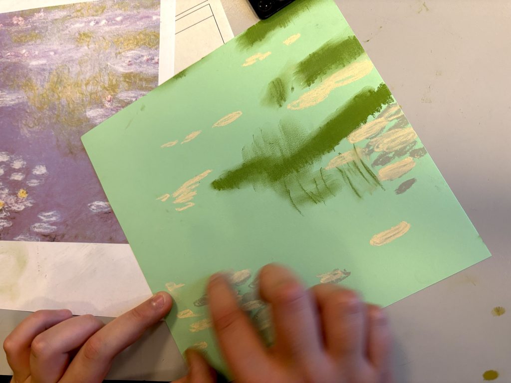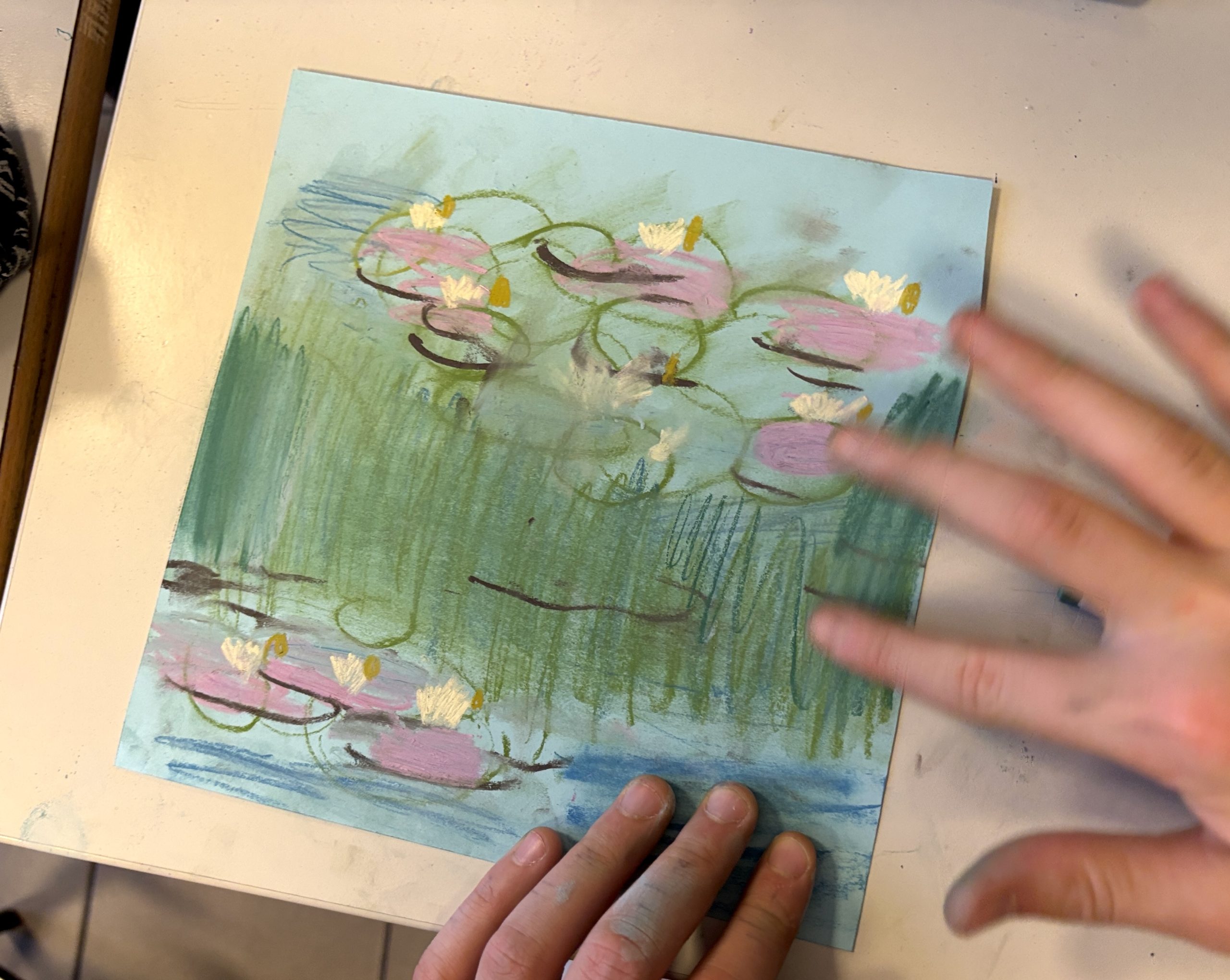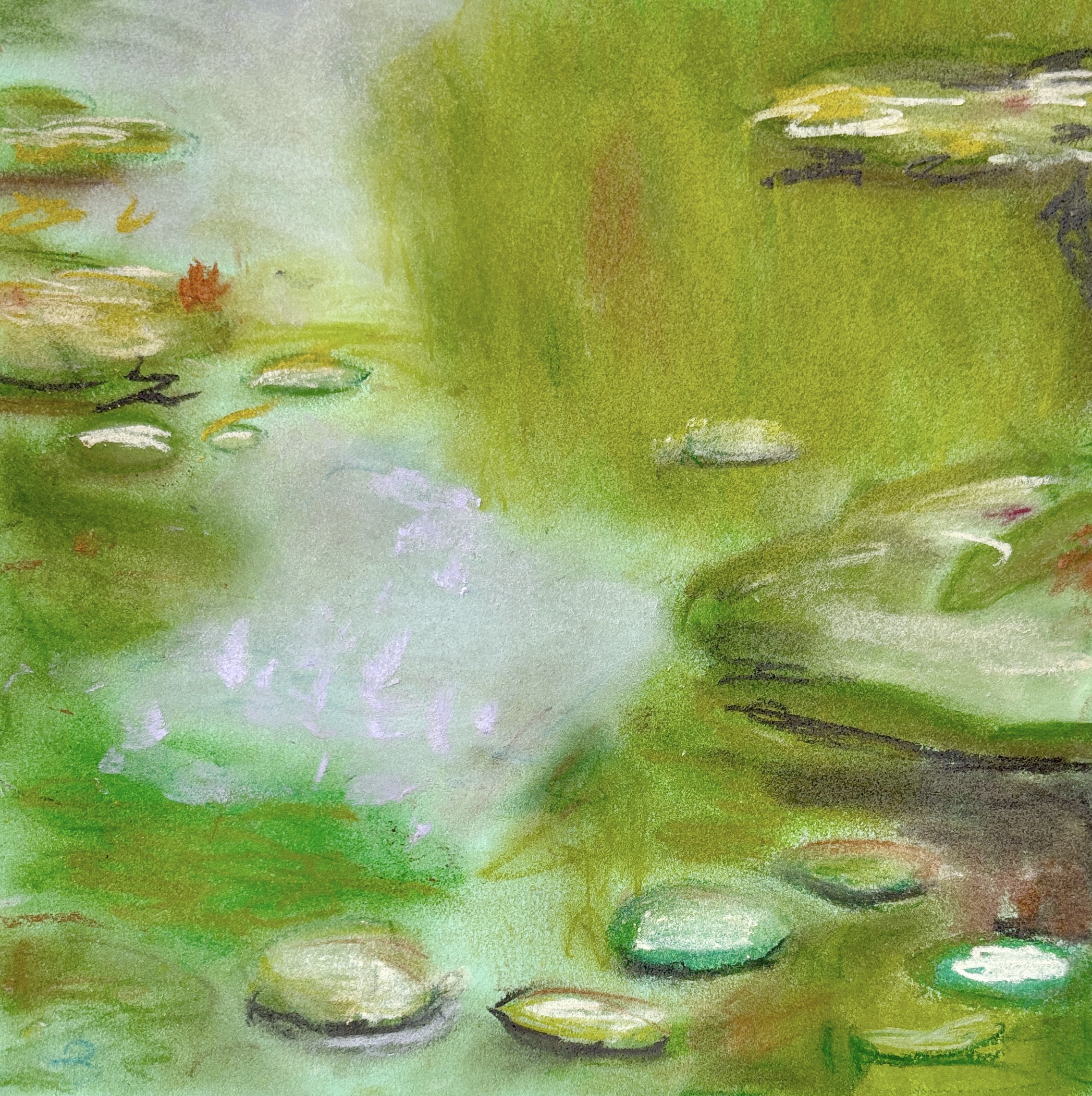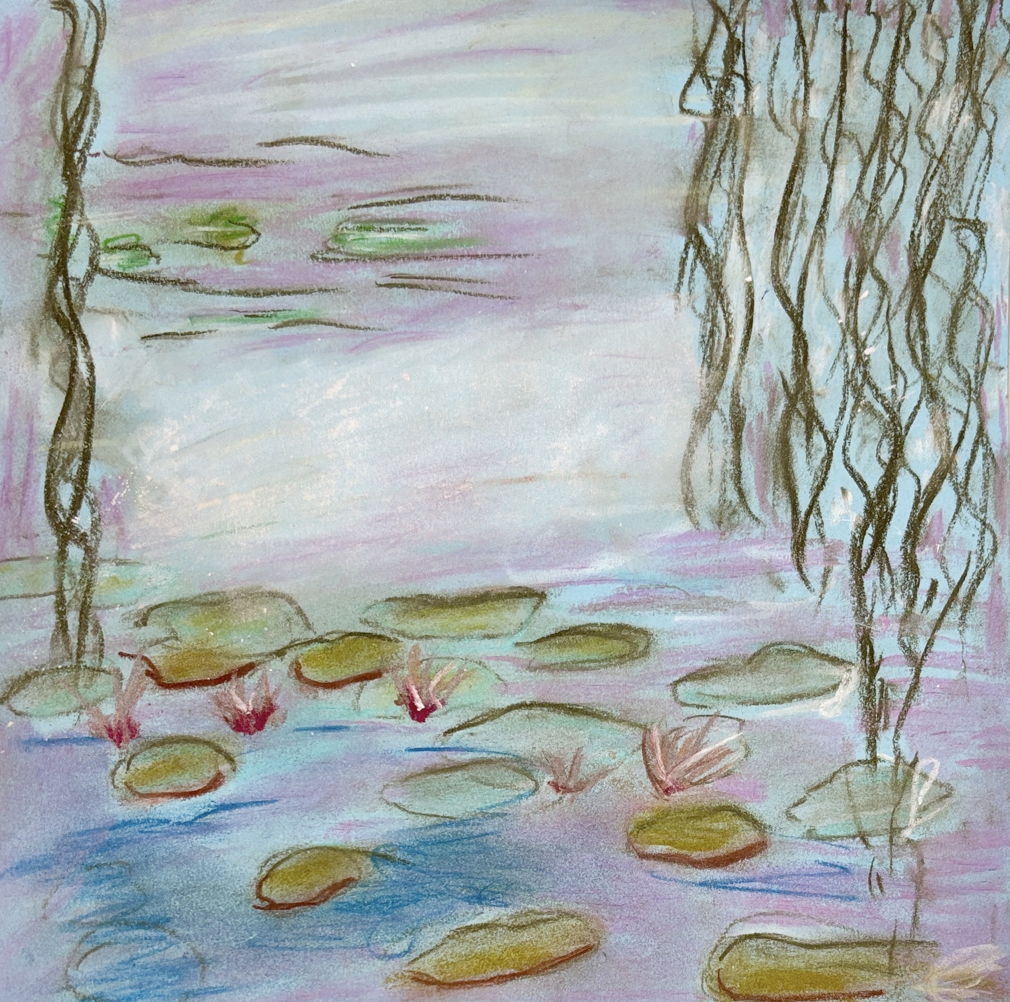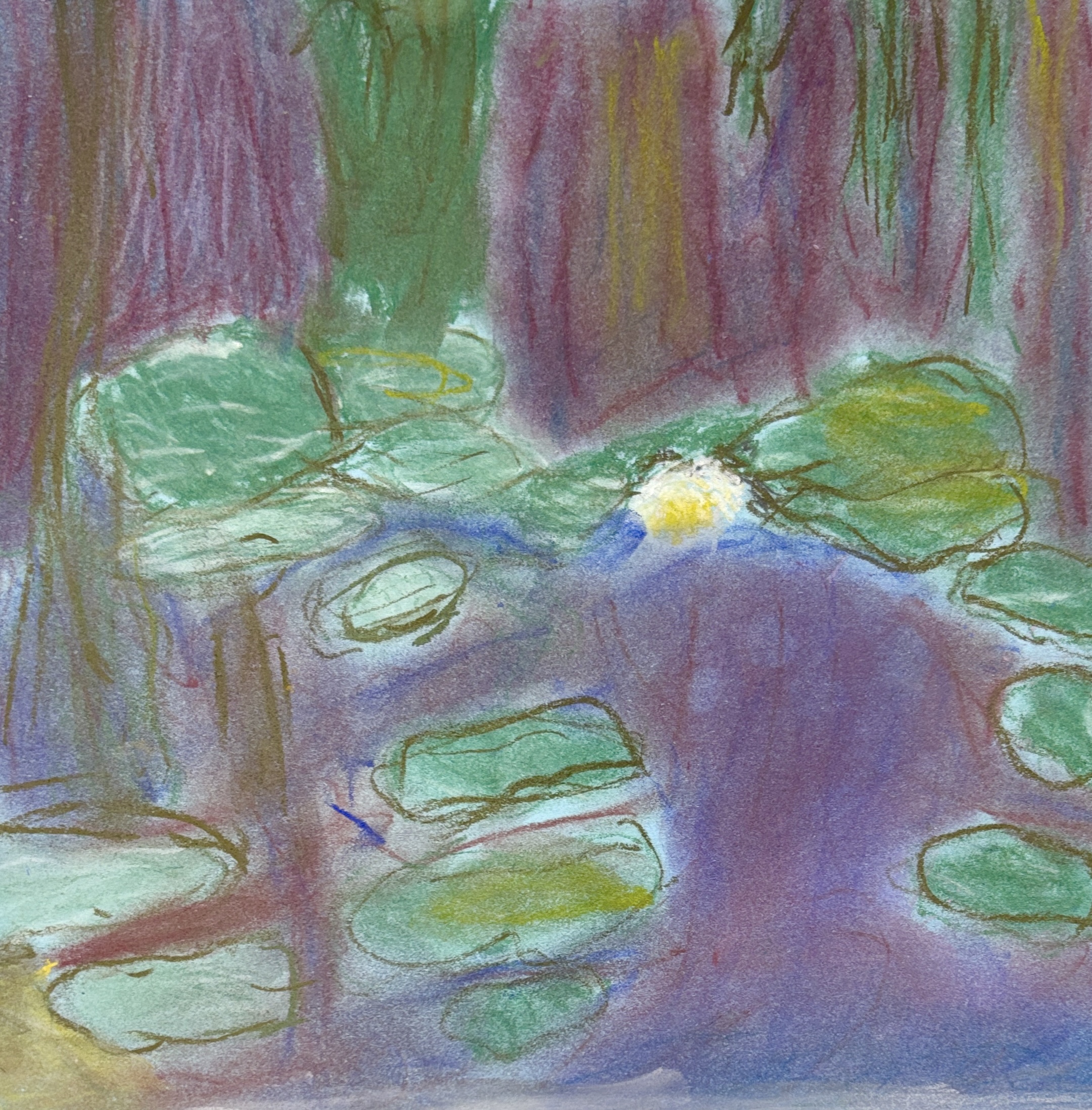 Monet’s Water Lilies with oil pastels