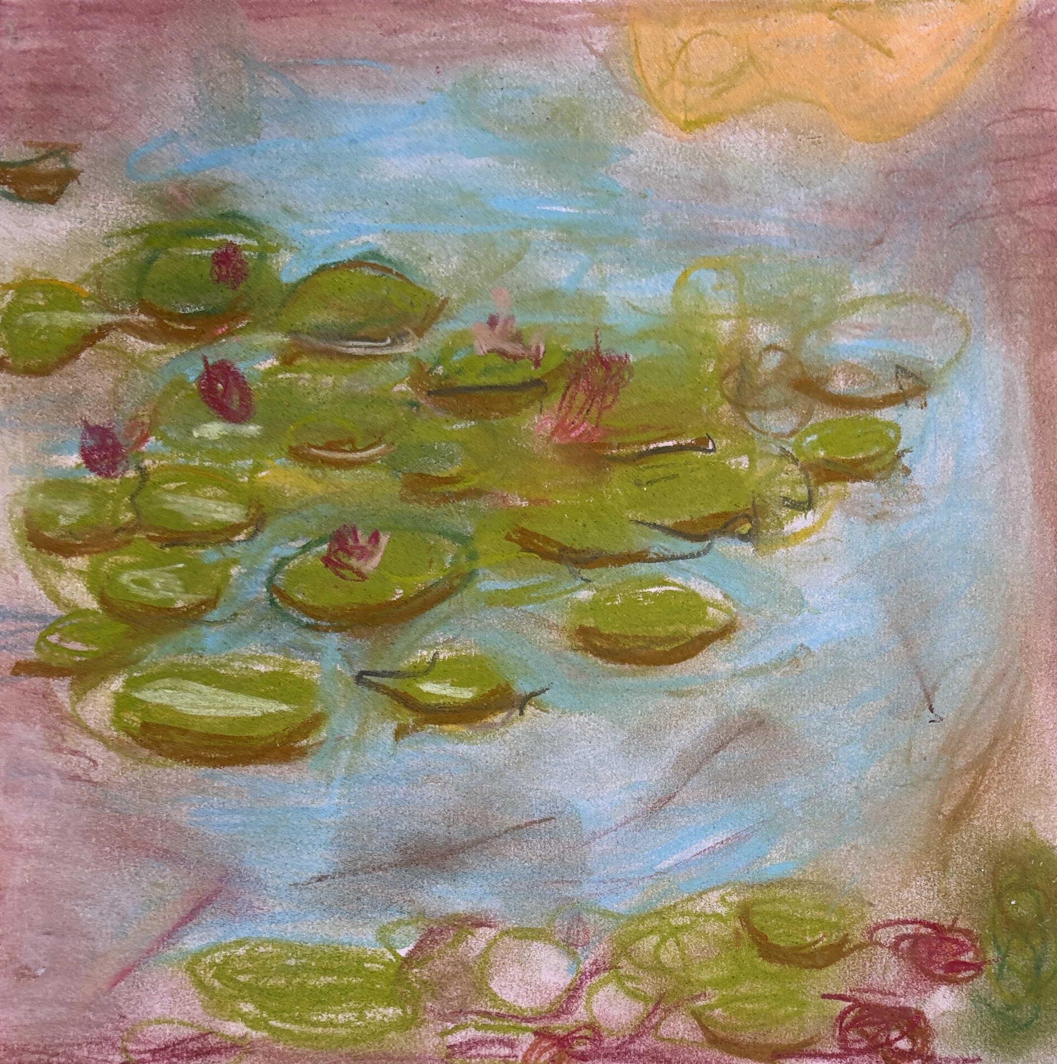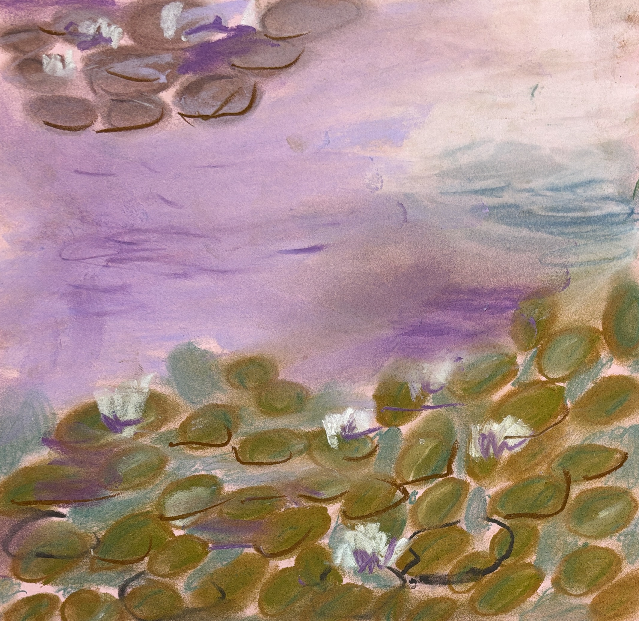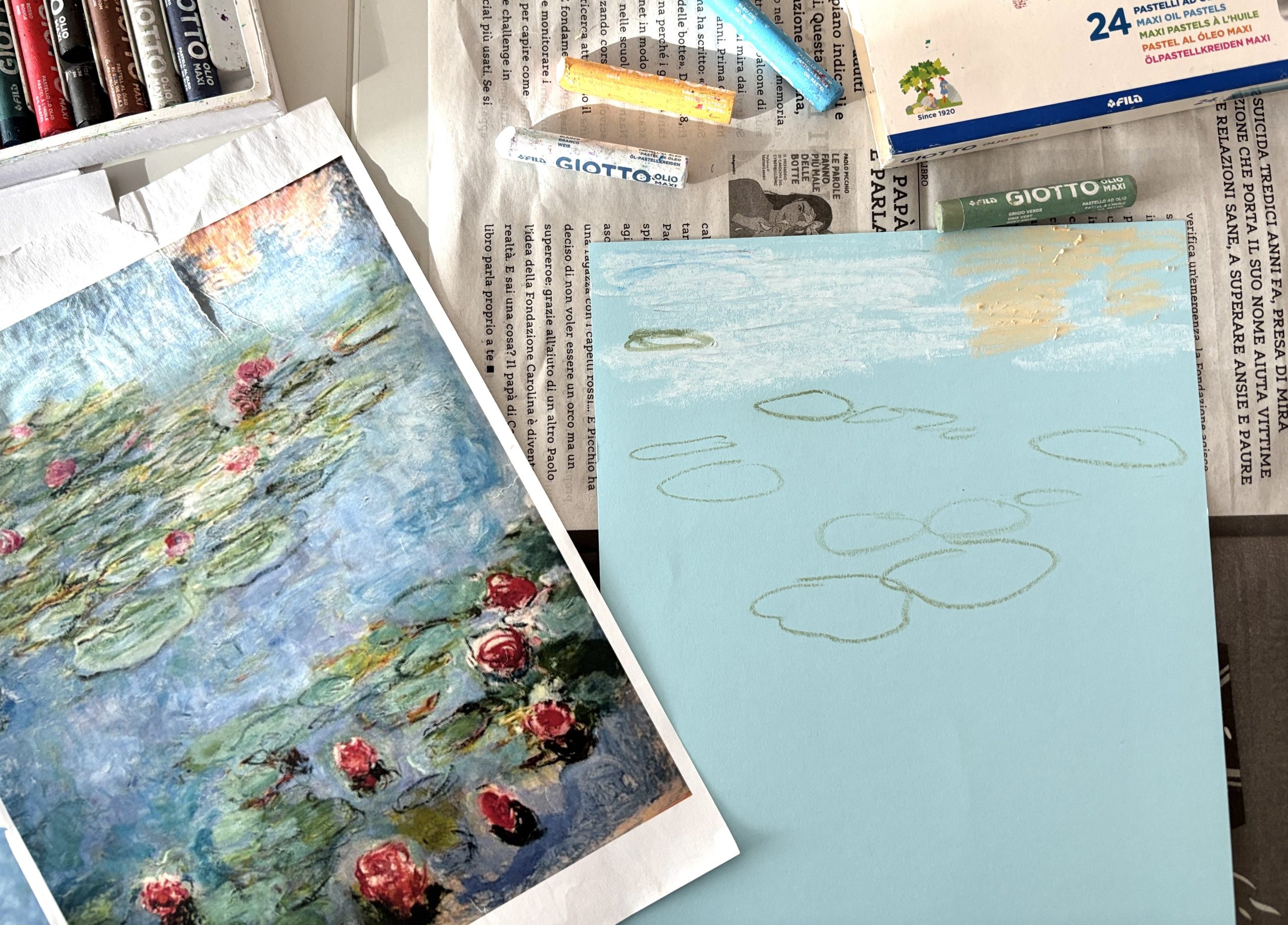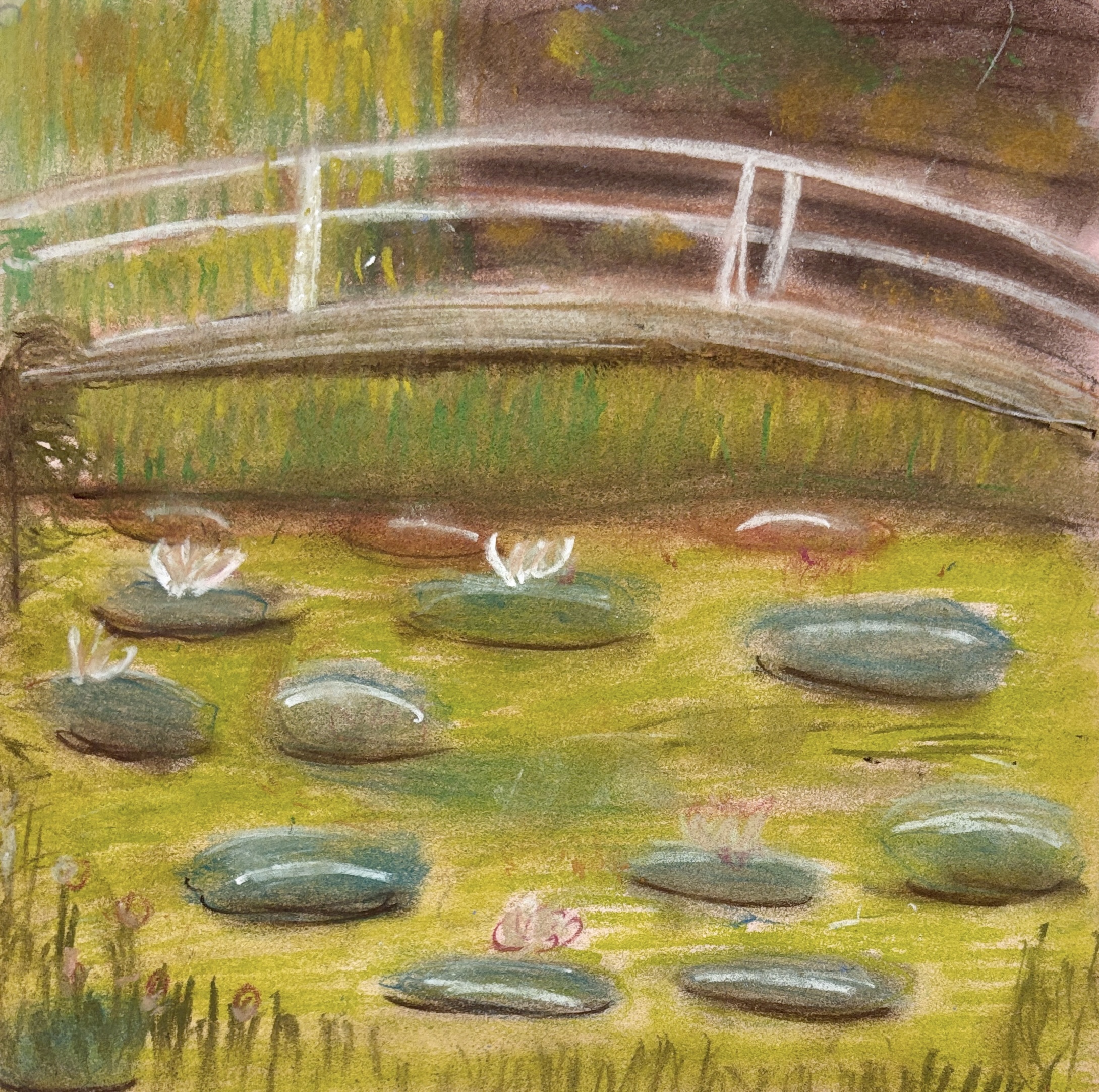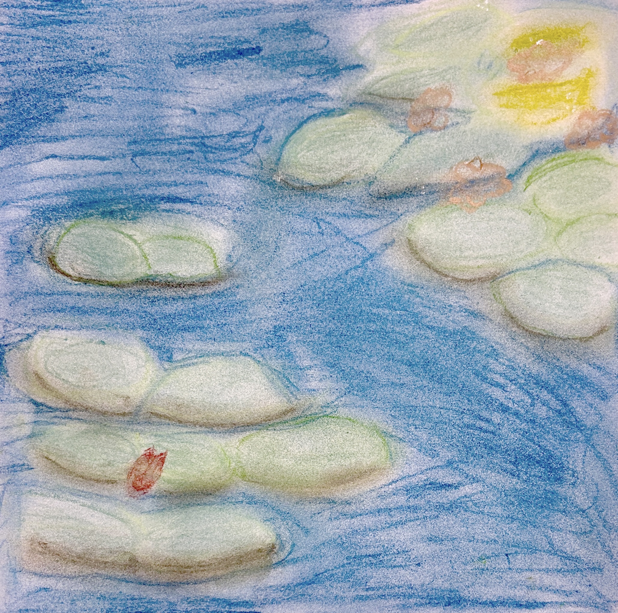 Monet’s Water Lilies with oil pastels