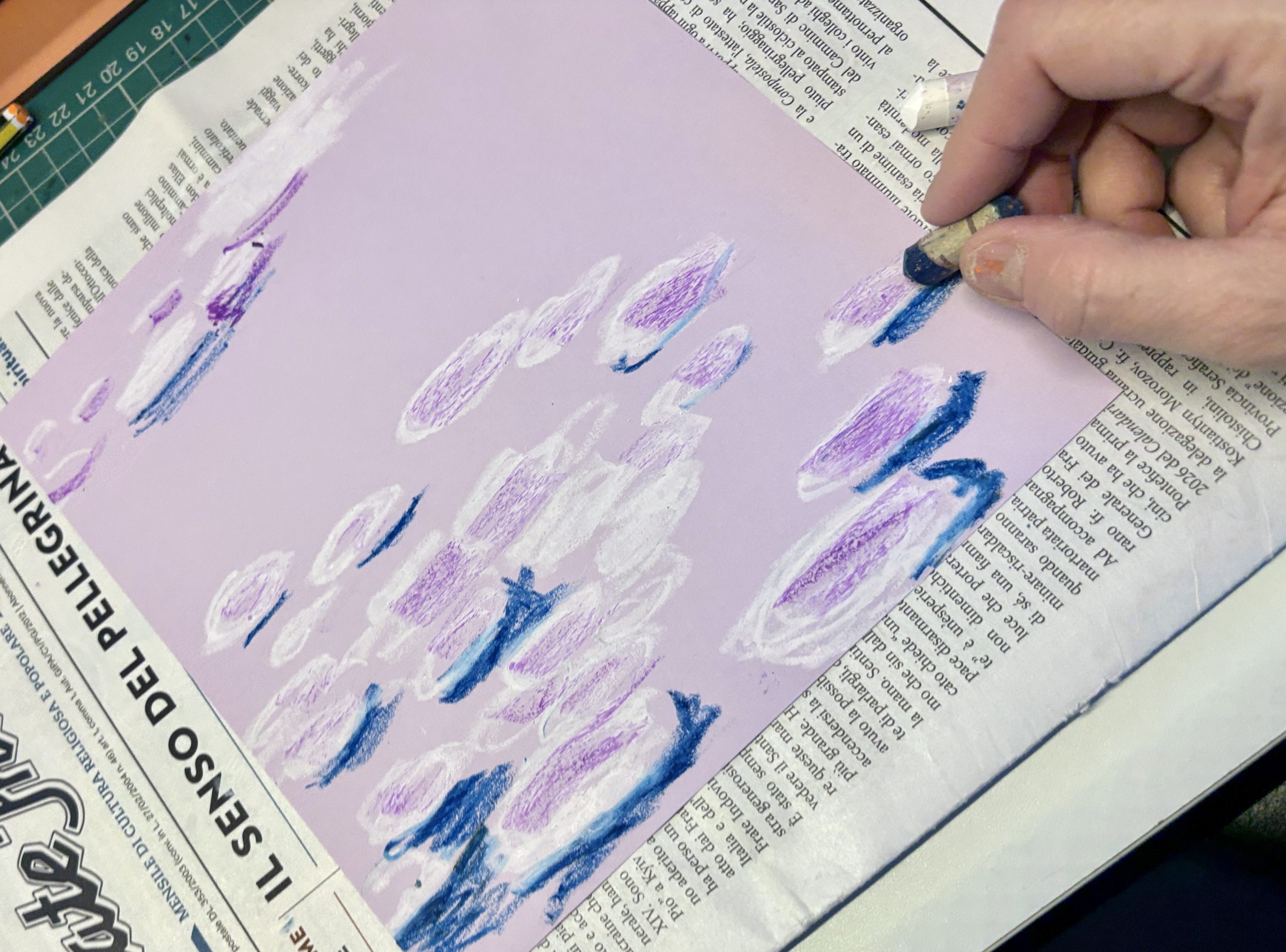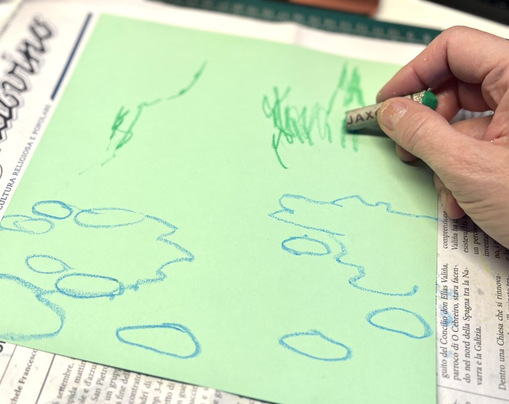 In a second phase of the laboratory, we experimented with a different technique using oil pastels. These colors are much thicker and allowed us to imitate the texture of the brushstrokes used by Monet.