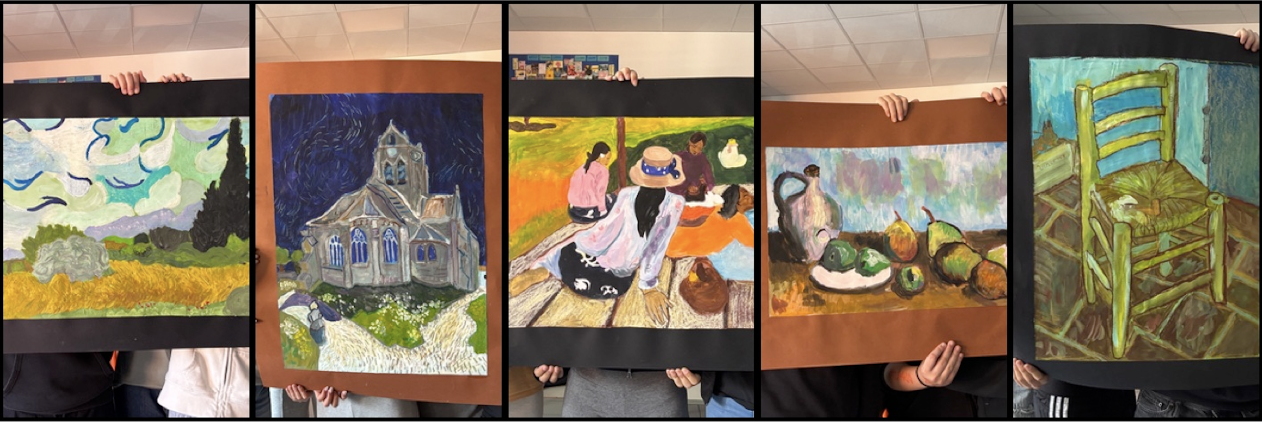 La tecnica pittorica degli Impressionisti francesi è inconfondibile nelle opere di Monet, Renoir, Pisarro. Dopo aver osservato le opere di questi artisti, con gli studenti delle classi terze, abbiamo provato a reinterpretare la foto di un paesaggio in stile impressionista. Prima abbiamo tracciato le linee principali del paesaggio su un foglio, evitando dettagli e particolari. Poi abbiamo riempito le zone tracciate con campiture di colori a tempera. Sopra a questi colori abbiamo successivamente dipinto a piccole pennellate  accostate tra di loro, cercando di imitare i colori della foto, scomponendoli nelle tonalità principali. Ecco i risultati, possiamo davvero chiamarle “Opere Impressioniste” !