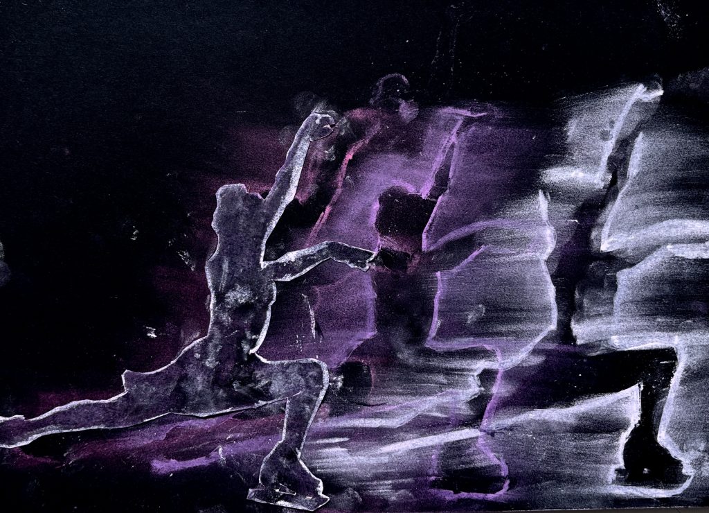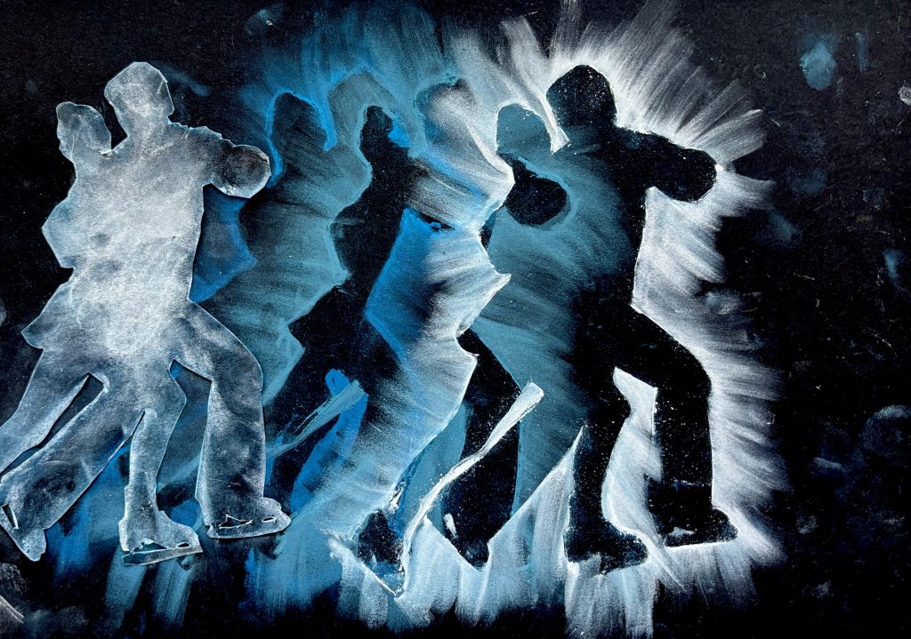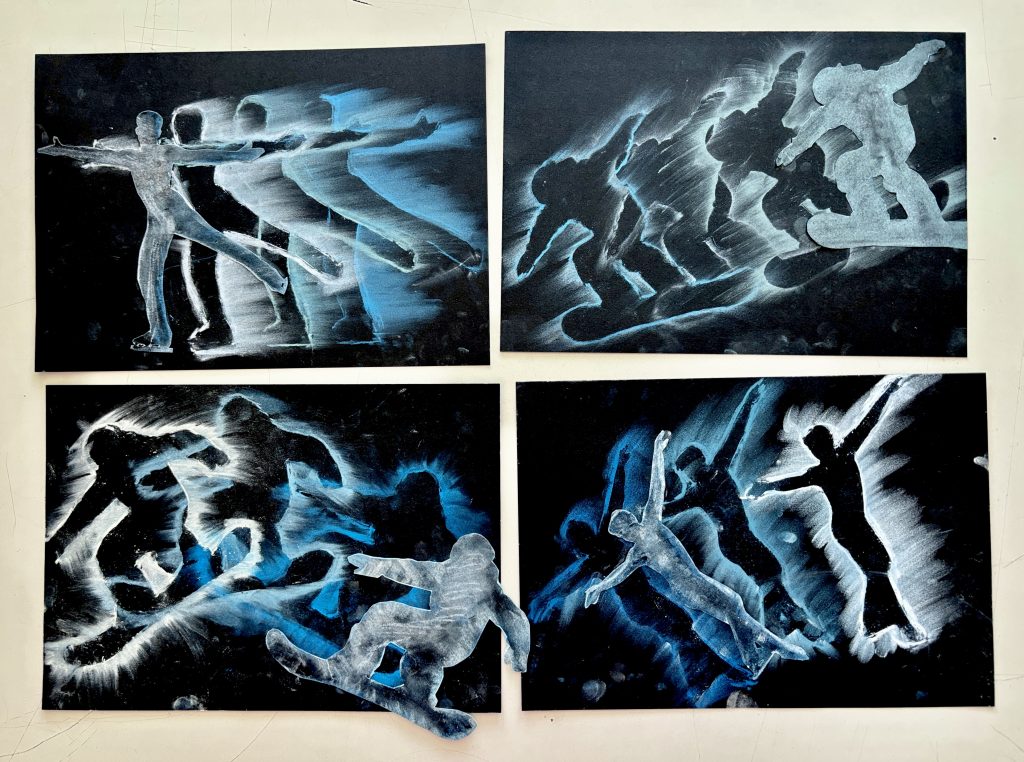 Ispirati dalle opere di Giacomo Balla, come Le mani del violinista o Dinamismo di un cane al guinzaglio, con le classi terze abbiamo esplorato la rappresentazione del movimento tipica del Futurismo. In occasione delle Olimpiadi Invernali del 2026, abbiamo scelto silhouette di atleti impegnati in vari sport, cercando di catturarne il dinamismo attraverso figure in sequenza e linee di forza, unendo arte, sport e percezione visiva. Puoi trovare le immagini di riferimento QUI sotto: